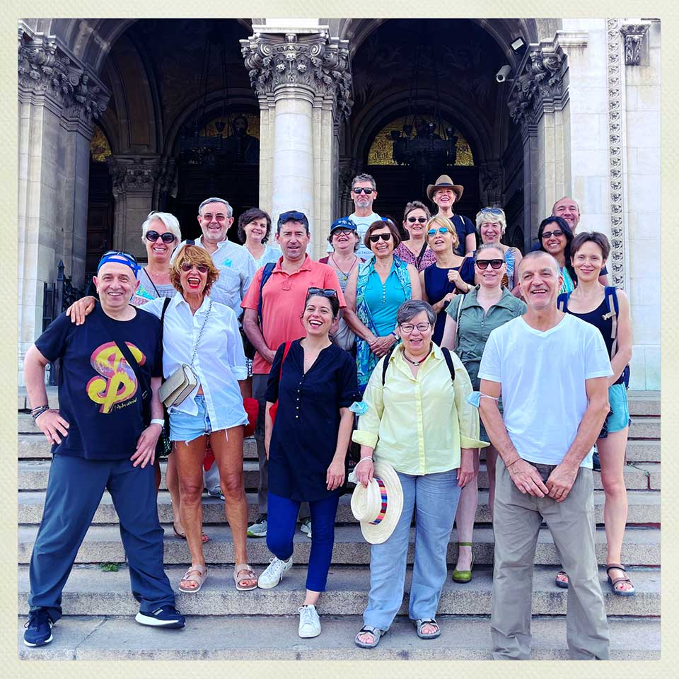 At the end of the day, we depart for Plovdiv although the actual visit will only take place tomorrow. In the meantime, we take a little tour of the old town and take some group pictures… Apparently, the thermometer will reach 40 degrees tomorrow. Wonderful!