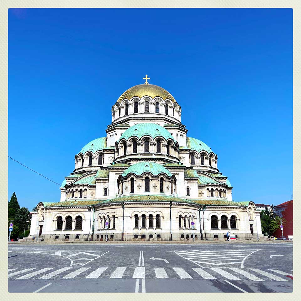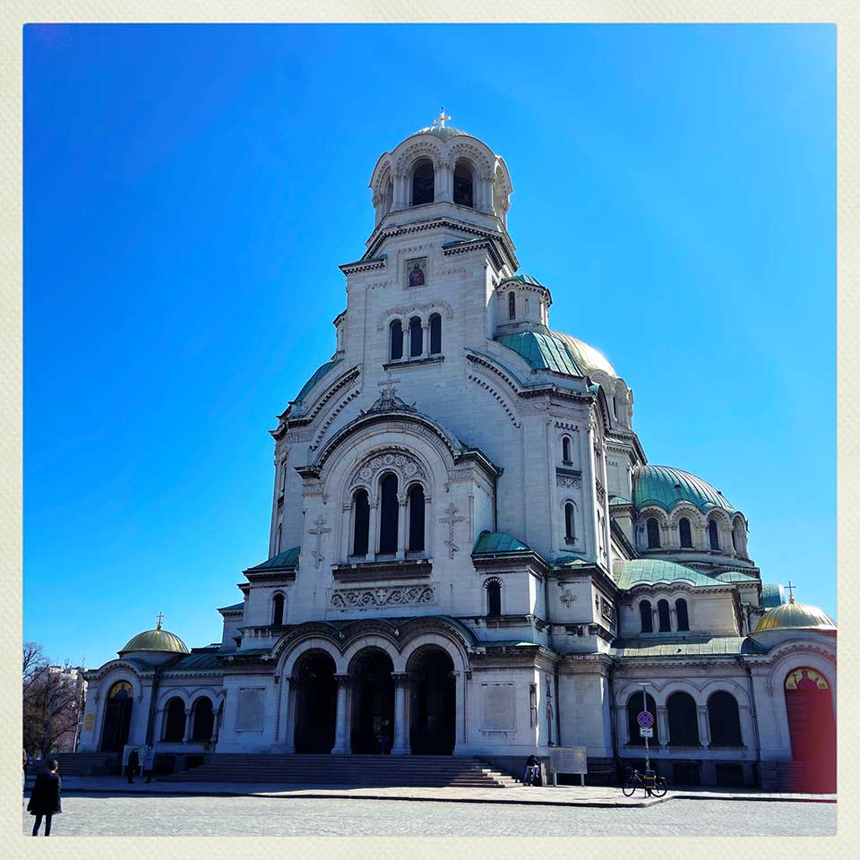 The adventure begins! This first day takes us to Sofia: the fabulous Saint Alexander Nevsky Cathedral, the Saint Sofia Church, the national theatre, the Rotunda of the Church of Saint George, as well as a number of buildings and sites from the communist era. The weather is beautiful with blue skies and, with 38 degrees and almost all of us living in Belgium, these weather conditions are a true blessing. It feels like the holidays…