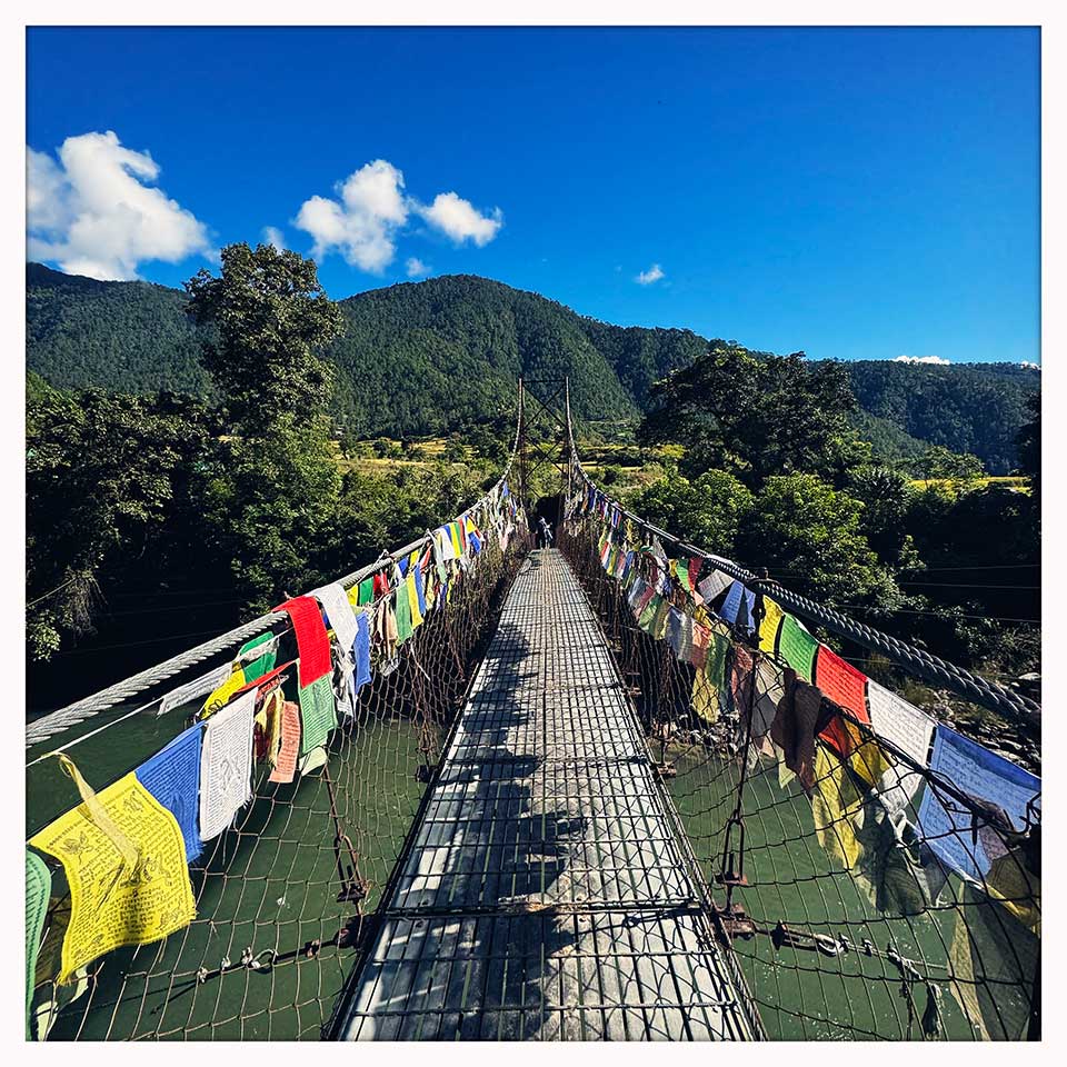 Bhutan does not reveal itself without patience. A cyclone swept through the region, grounding all flights. We stayed one extra day in Kathmandu, suspended between two worlds, between the memory of Nepal and the impatience of discovering the neighboring kingdom. The sky rumbled, plans shifted, yet the spirit of the journey remained perfectly intact.