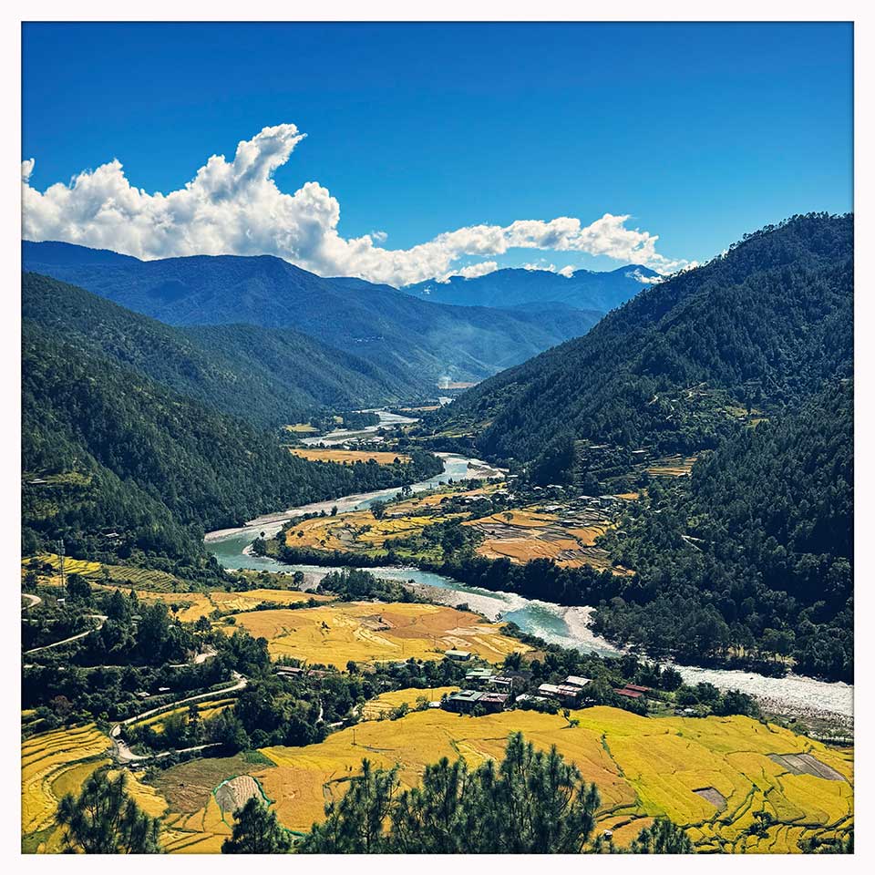 This morning, we leave the Punakha valley to reach Paro, the final stage of our journey in Bhutan. The road winds between mountains and pine forests, crosses misty passes, and follows peaceful villages where time appears suspended. Every turn offers a new perspective, a different light, a silence filled with presence.