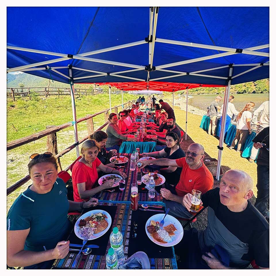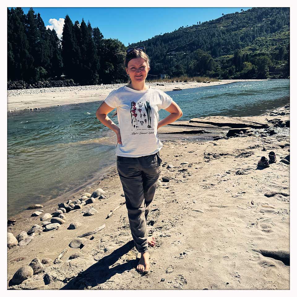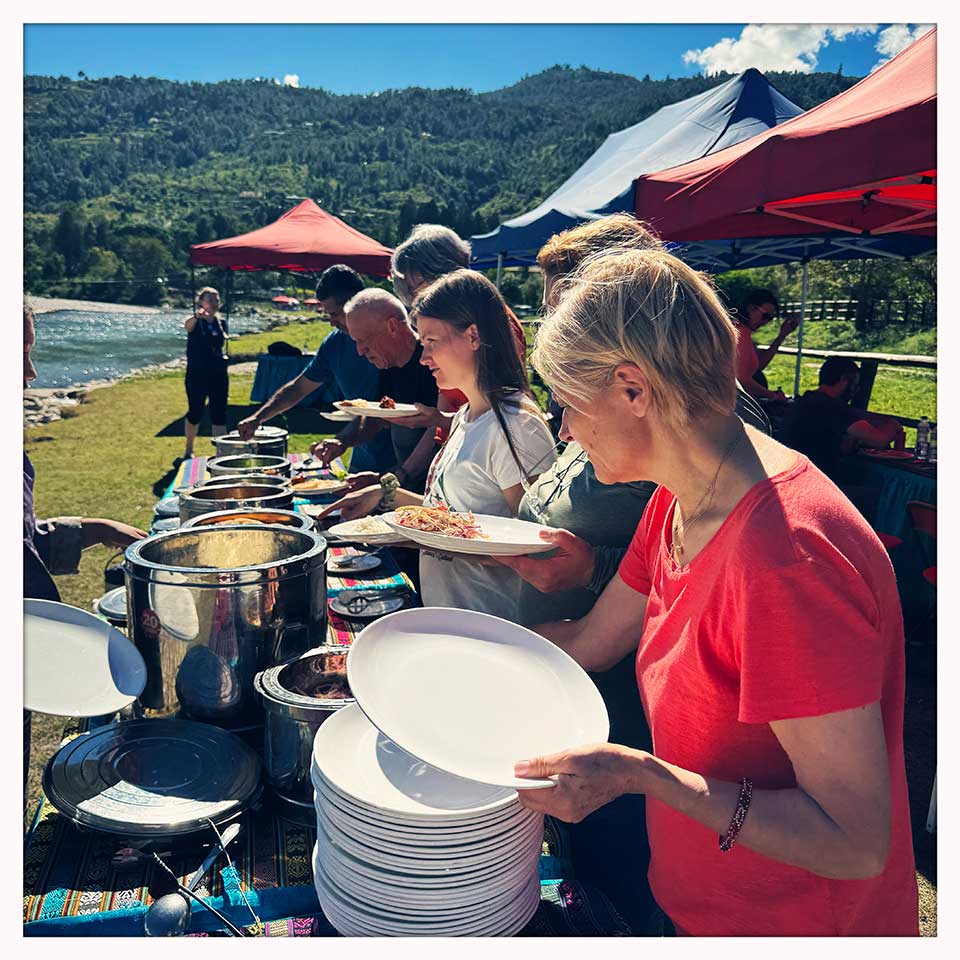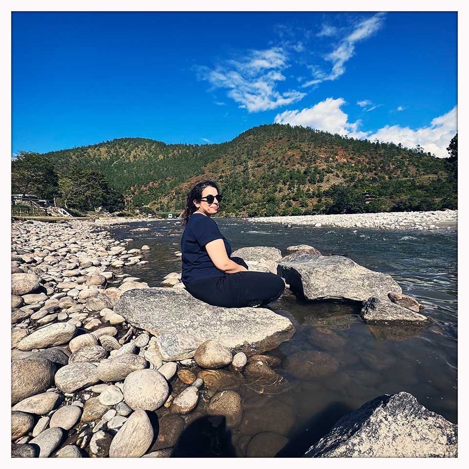 We pause for a picnic by the river, surrounded by blue-tinted mountains and Himalayan pines. The icy water rushes over the stones, clear and vibrant, as if it carried time away with it.