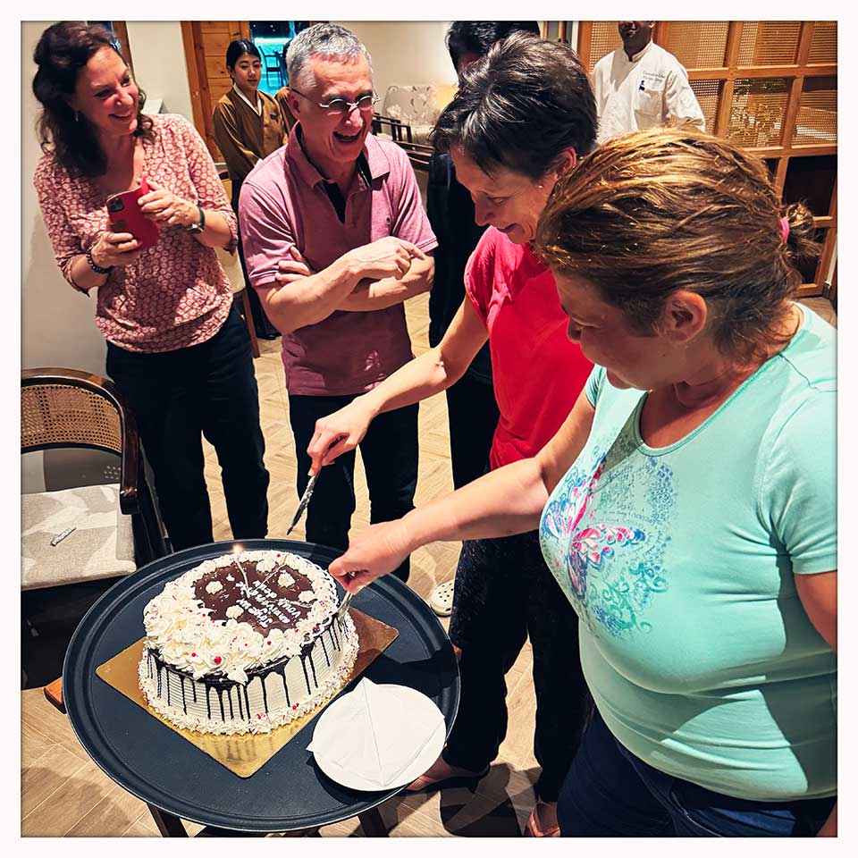 The day ends in light and laughter: a yoga session at sunset, followed by a joyful evening celebrating Daniela and Nadia’s birthdays. Between the songs, the laughter, and the candles, even the mountain seemed to smile.