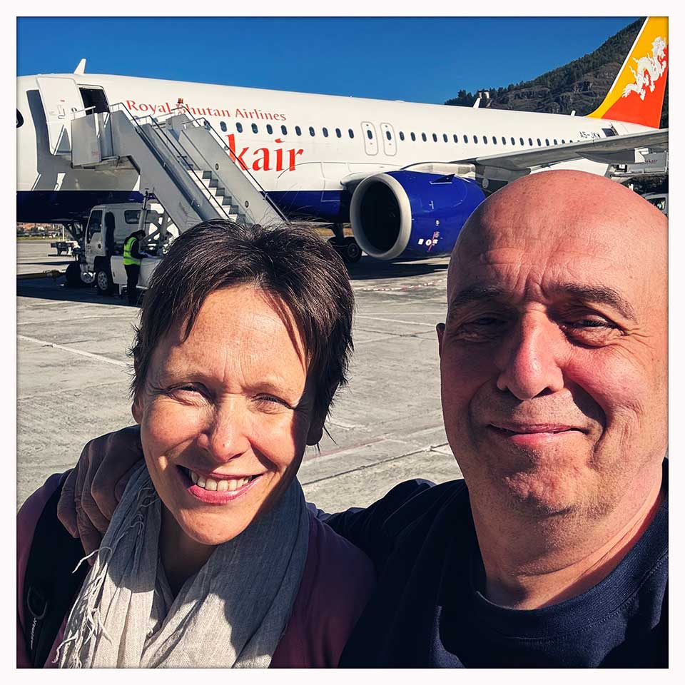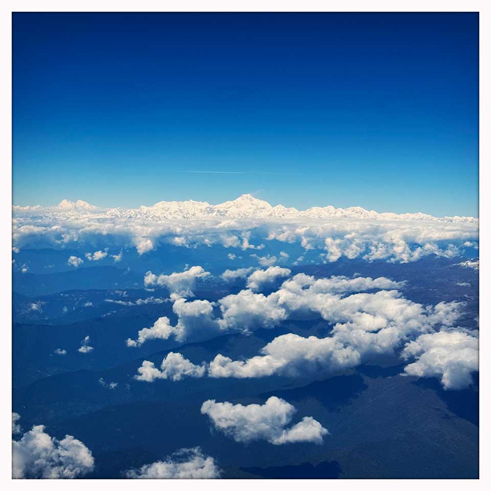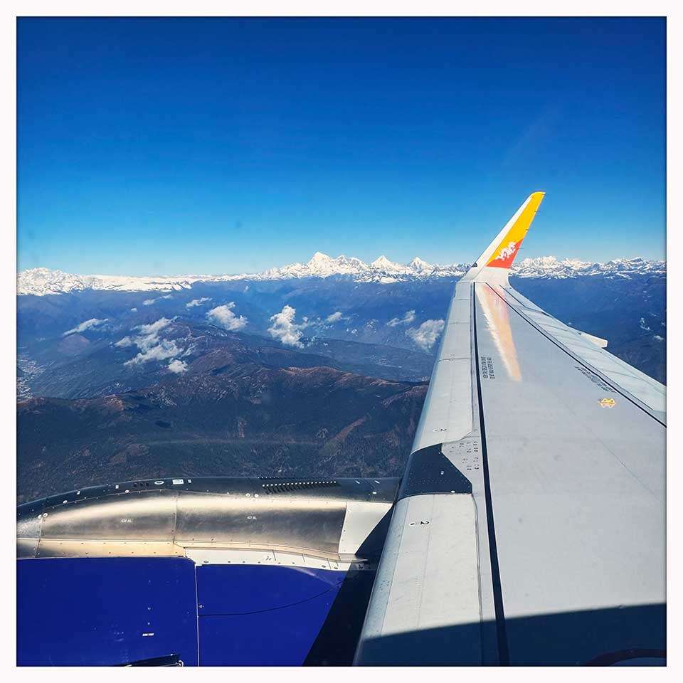 The following day, at last, the wind calmed. We were able to take off, flying above a sea of clouds before catching sight, in the distance, of Bhutan’s snow-covered peaks. The silence on board said everything: the journey had found its breath again.